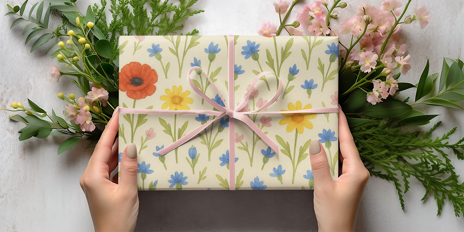 Meadow Muse Gift Paper - Vibrant Botanical Gift Wrap for Birthdays and Celebrations